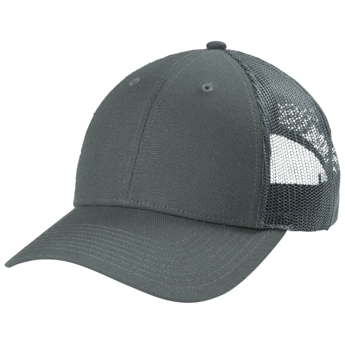 Choose your embroidery for the CornerStone Charcoal Canvas Mesh Back Cap to showcase your name, brand, or company as needed. This mesh back cap, in trucker like style, is fun and convenient. Made of 100% cotton canvas on the two-panel front with a 100% polyester woven mesh on the back panels, the cap has a moisture wicking sweatband and adjustable snapback for a one size fits most type sizing. Mid-profile and structured, this cap is great with a custom logo for sportswear or daily wear for those who so choose.