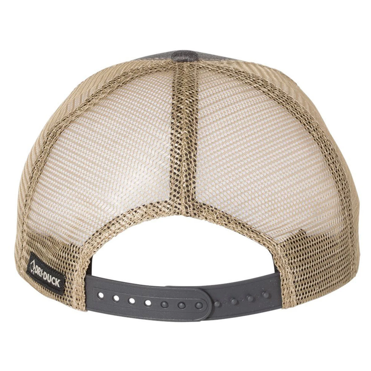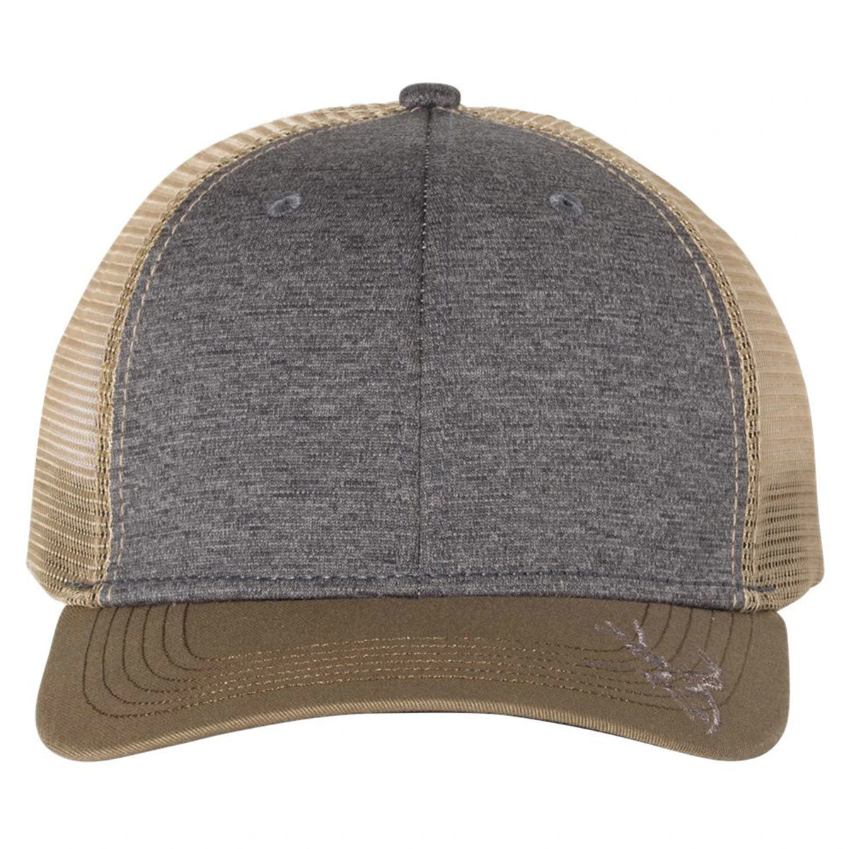 Have some fun with a custom embroidered Dri Duck Heather Graphite/Khaki Buck Head Trucker Cap. Made with hunters in mind, this polyester rick cotton heathered jersey knit front trucker cap has a gorgeous buck head on the visor for fun and flair. The structured, six panel, mid-profile trucker cap is perfect for those who enjoy the great outdoors. Add an embroidery in the deign of your choice to the front to promote your company or corporation. The traditionally styled trucker cap with mesh sides and back makes a great employee gift with a snapback closure that fits most. The precurved visor with black undervisor protects the eyes as you enjoy whatever activity is scheduled.