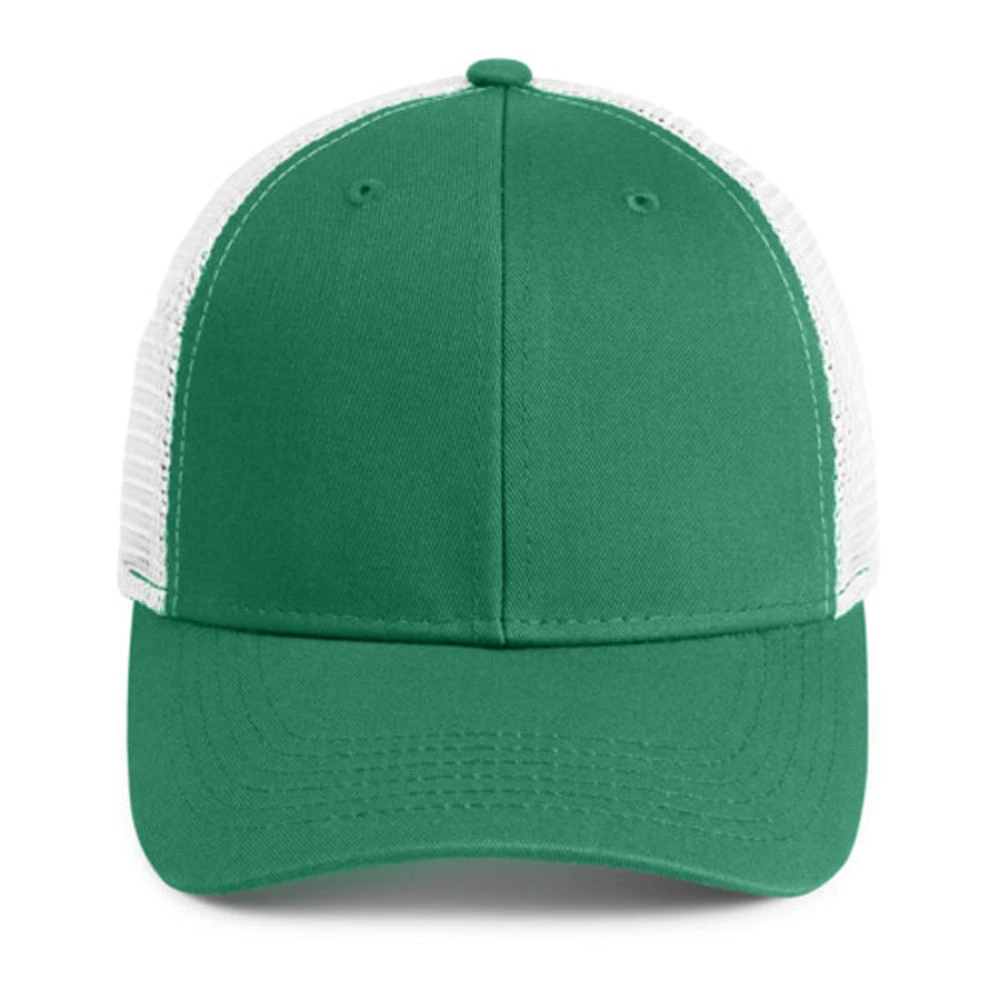 - Garment washed cotton twill front and ultra-soft polyester mesh back
