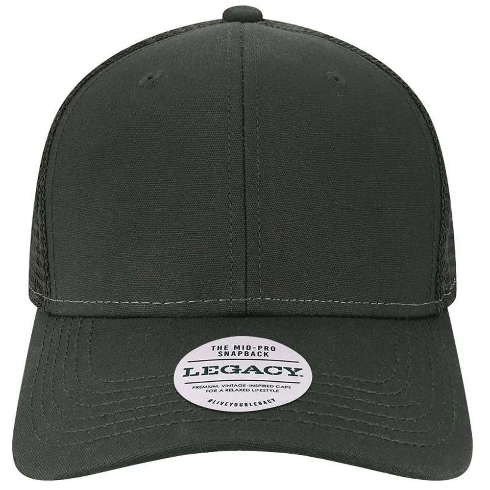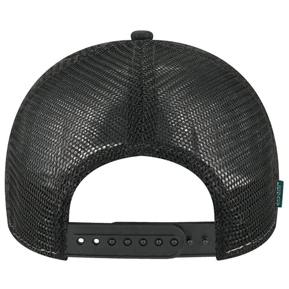 Create a promotional accessory that is big on vintage inspired by style adding your company’s custom logo or design to the front of the Legacy Black/Black Mid-Pro Snapback Trucker Cap. Classic details like a mesh back and adjustable snapback make it perfect for audiences of all ages.