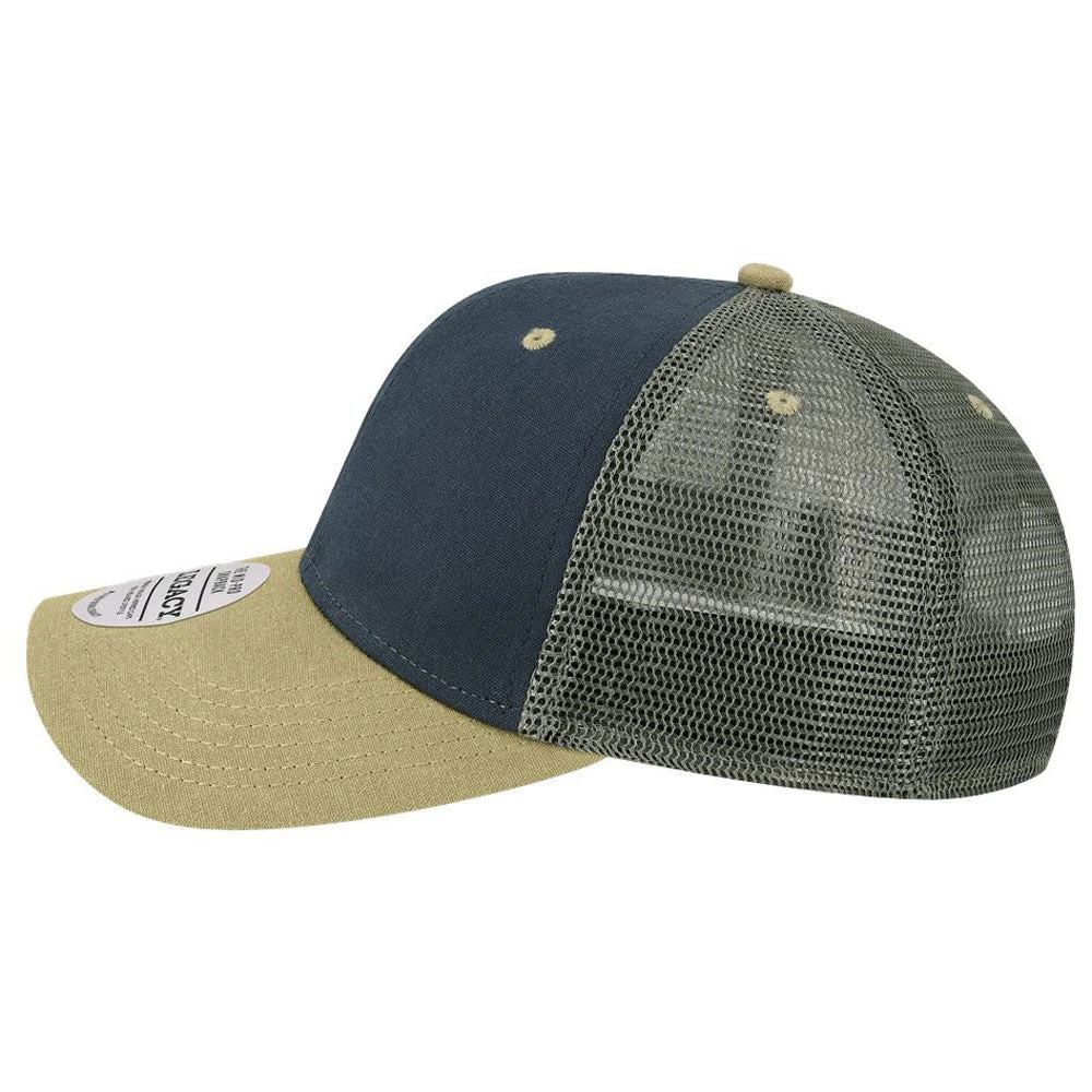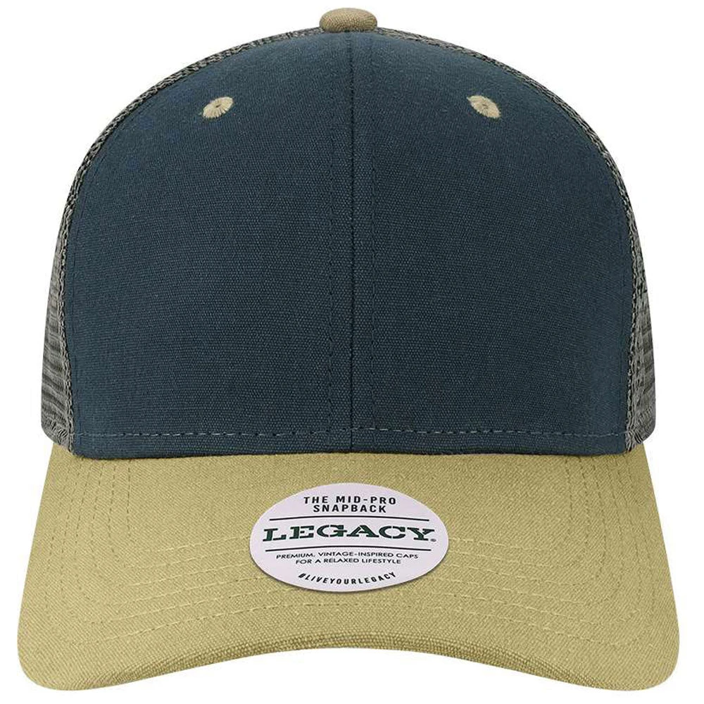 Create a promotional accessory that is big on vintage inspired by style adding your company’s custom logo or design to the front of the Legacy Navy/Vegas/Dark Grey Mid-Pro Snapback Trucker Cap. Classic details like a mesh back and adjustable snapback make it perfect for audiences of all ages.