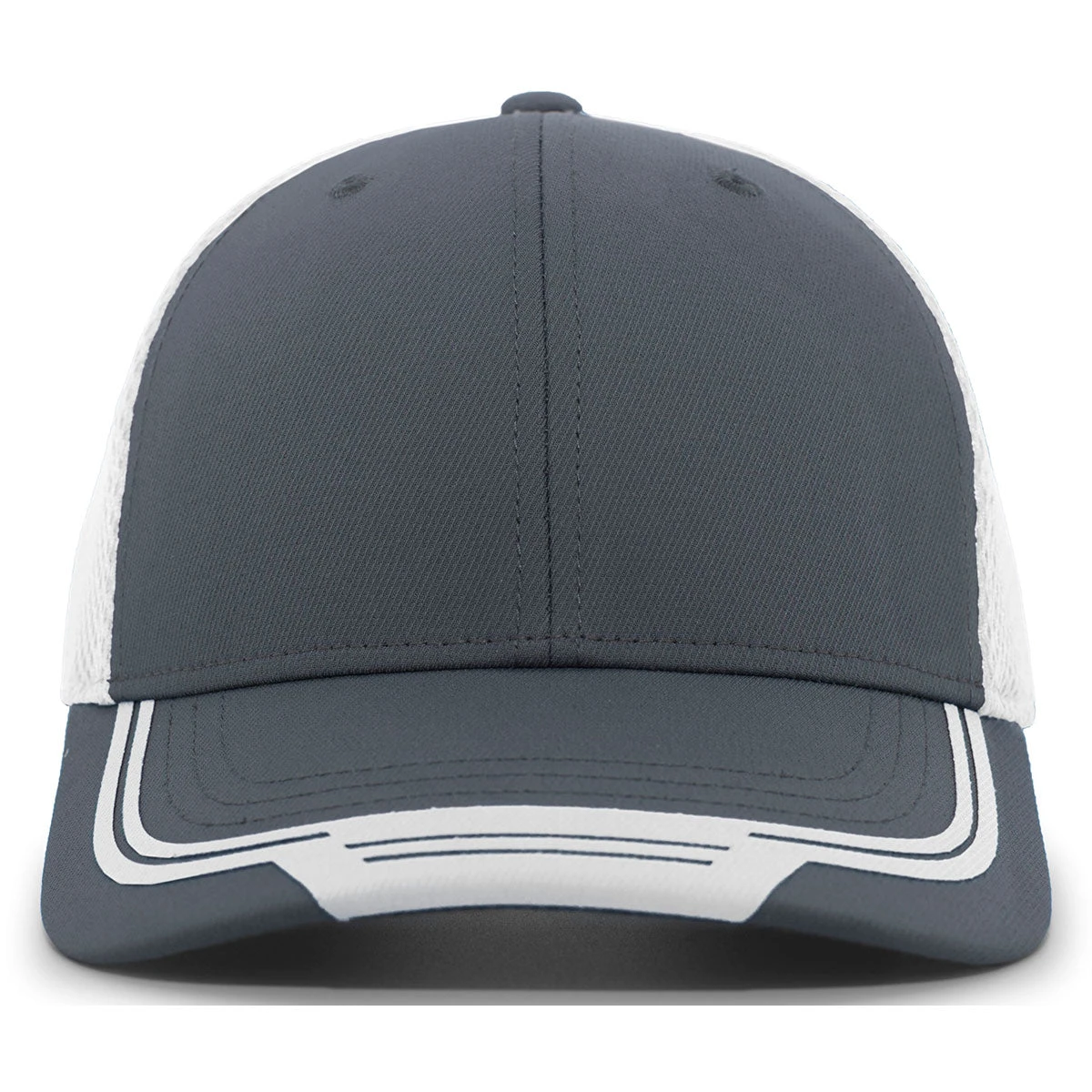 Enjoy a custom look with the Pacific Headwear Carbon/White/Carbon Welded Sideline Cap. The polyester rich spandex tech twill cap wicks moisture and is water resistant. Add a company logo to the breathable mid-profile pro-model with a curved visor to use as employee gifts or as part of employee apparel for daily wear. The ease of wear of this cap means it is the ideal choice for a round of golf, running errands or just hanging out with family and friends at home. Made with an ultra soft wicking sweatband to keep you dry, this is a true must have for those who love caps. The hook and loop closure is adjustable for a one size fits most design.