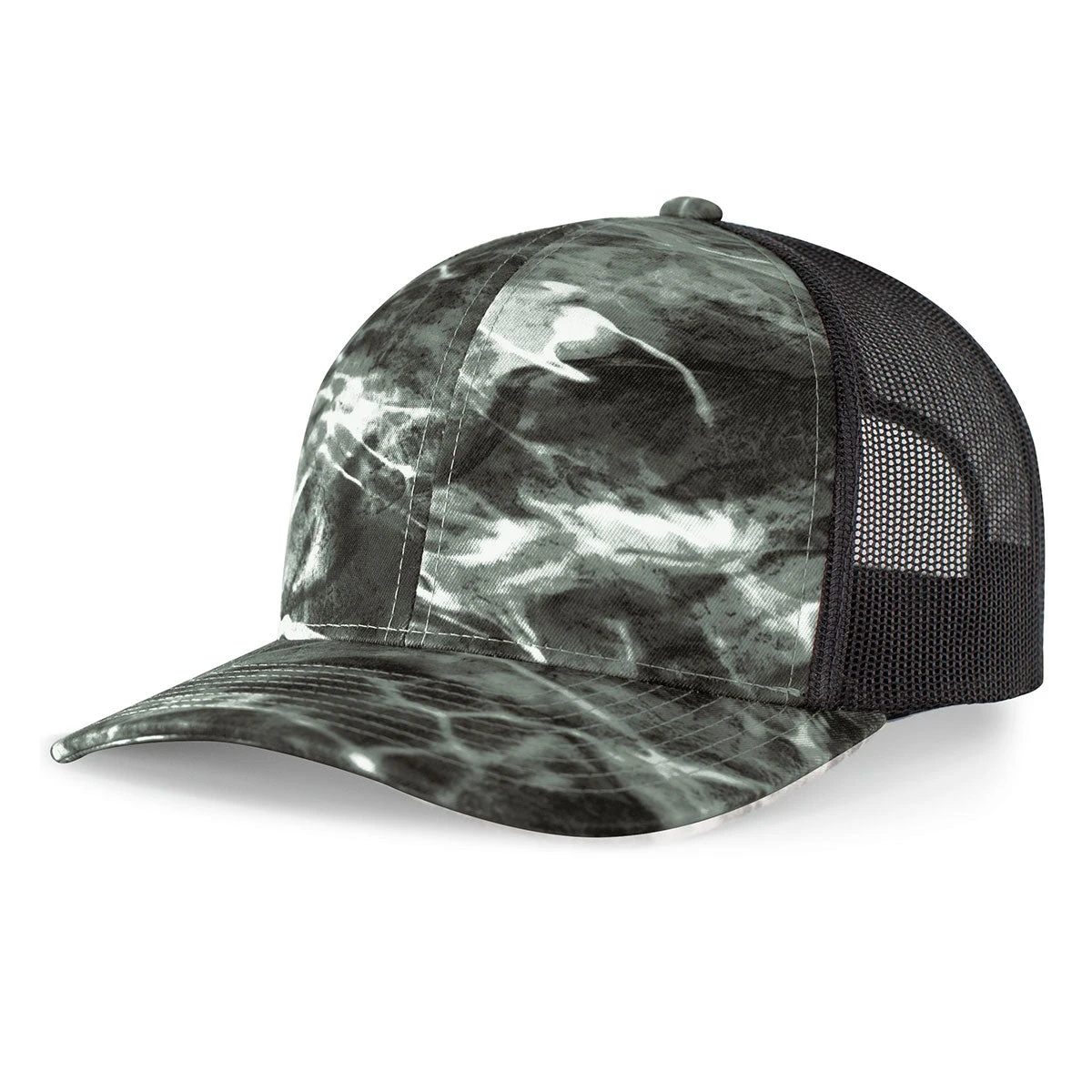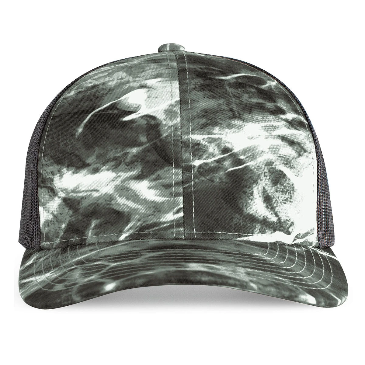 Add a custom logo to the Pacific Headwear Elements Black Tip/Light Charcoal Elements Aqua Camp Trucker Snapback Cap for a look that can serve a multitude of purposes. This creative design on a traditional style cap will appeal to many. Whether an artist, a driver, a delivery man, or just someone who enjoys looking good, this cap will be a big hit. Your custom logo will pop on the water inspired print on the mid-profile crown and curved visor. The back is traditional trucker mesh and a pro-stitch finish means durability over time. This cap will be a fast seller so make sure you order several to sale, share, and keep.