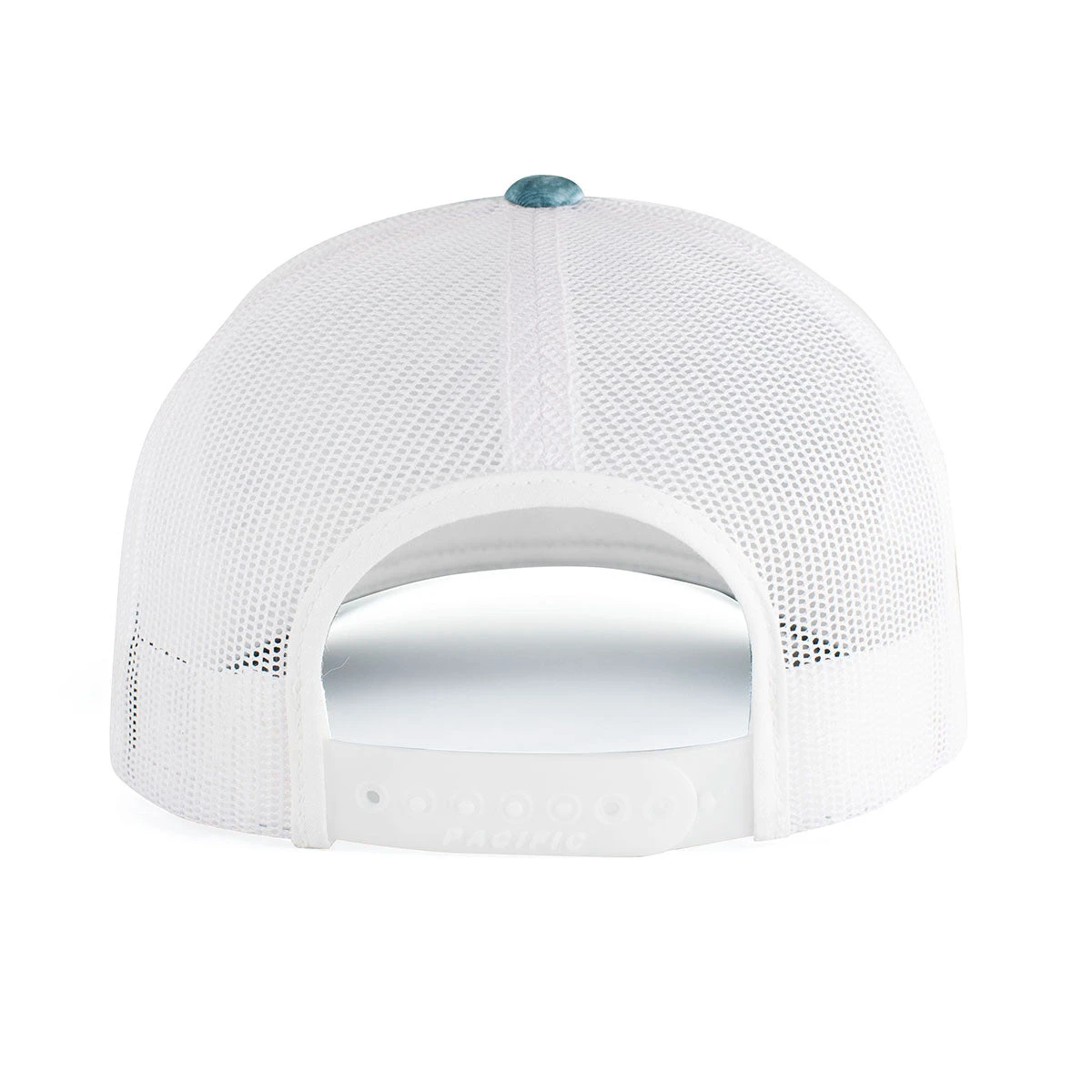 Add a custom logo to the Pacific Headwear Elements Spindrift/White Elements Aqua Camp Trucker Snapback Cap for a look that can serve a multitude of purposes. This creative design on a traditional style cap will appeal to many. Whether an artist, a driver, a delivery man, or just someone who enjoys looking good, this cap will be a big hit. Your custom logo will pop on the water inspired print on the mid-profile crown and curved visor. The back is traditional trucker mesh and a pro-stitch finish means durability over time. This cap will be a fast seller so make sure you order several to sale, share, and keep.