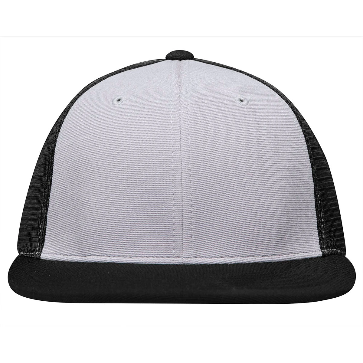 Add embroidery to the Pacific Headwear Silver/Black/Black Premium M2 Performance Trucker FlexFit Cap for a new take on a true classic. This trucker mesh performance mesh cap has a pro-stitch finish that is durable enough for daily wear as employee apparel or while hanging with friends. Add a custom logo to start building your logoed apparel line with this perfect combination of form, fashion, and function. The FlexFit cap has anti-microbial properties, moisture wicking, and is stain resistant. The full-profile design with a flat visor has a closed back for a one size fits most creation that will be an instant hit.