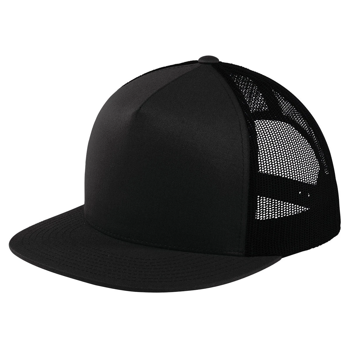 Put the embroidered Sport-Tek Black/Black Yupoong 5-Panel Classic Trucker Mesh Back Cap into a new employee gift bag and watch the newest team members take pride in wearing the custom company apparel. Seven adjustable positions ensure everyone on your team achieves the most comfortable fit. The high profile is perfect for professionals that need to see everything in the field. Rugged 100% polyester fabric withstands constant punishment to deliver years of high performance use. Attach your company logo on the mesh back cap to capture the attention of customer prospects at corporate events.