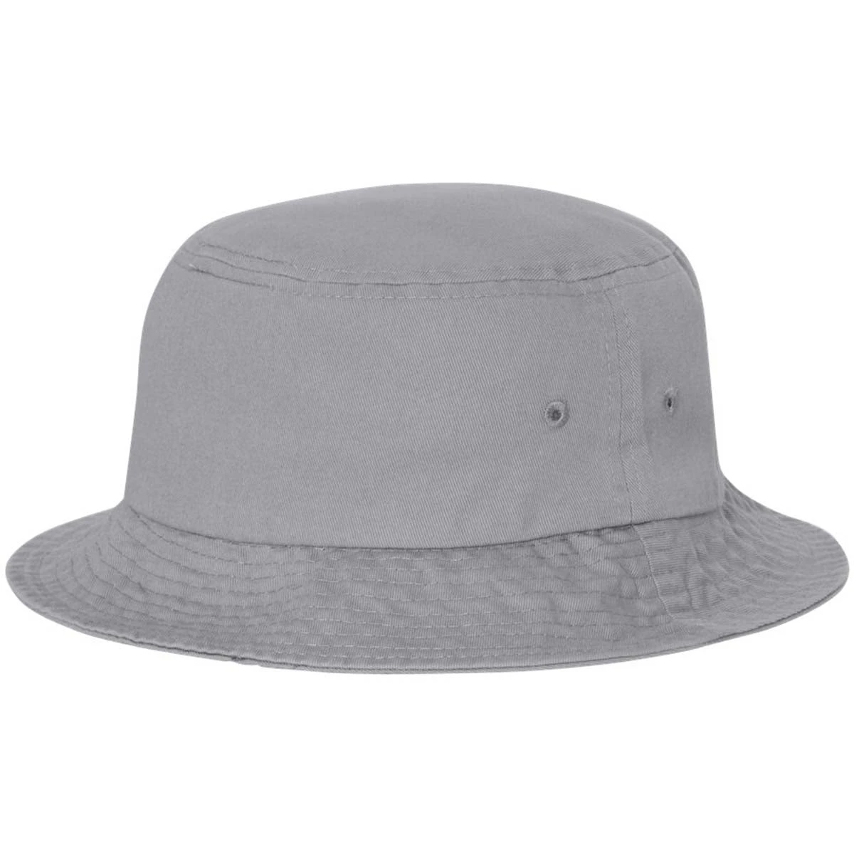 Fish, hunt, relax, or work, in a custom embroidered Sportsman Grey Bucket Cap in one of eight classic colors. The 100% bio-washed chino twill cotton hat offers an unstructured 3 1/2 inch crown with 2 inch brim for excellent eye protection from the sun. The sewn eyelets offer a bit of detail that truly makes this cap perfect to carry your company logo or corporate embroidery. The one size fits most sizing means most adult wearers can adorn this piece comfortably whether at a sporting event or chilling around the campfire. Place your order for this awesome headwear today!
