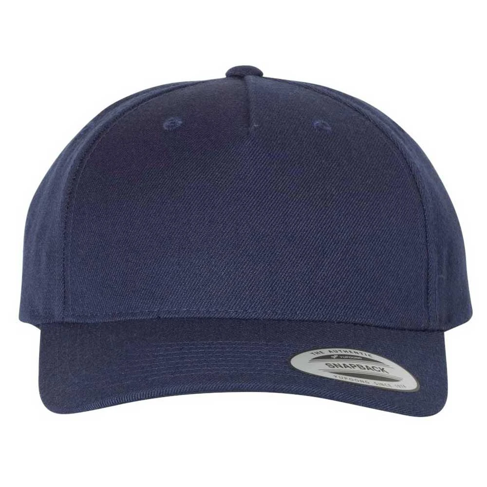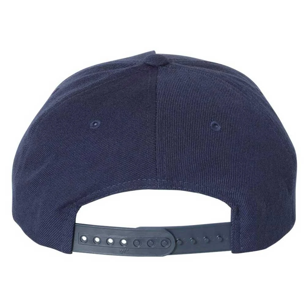 Top off your look with a custom embroidery on the Yupoong Navy Classic Wool Blend Cap. This simple acrylic and wool blend cap provides a great canvas for your company logo on the structured, five panel, mid-profile cap with Permacurv visor. Ideal as custom gifts for customers, employees, or those who are willing to support your company. The snapback closure creates a one size fits most design that most everyone will enjoy. Add your unique design to add to your logoed apparel collection and watch as these fly off the shelves.